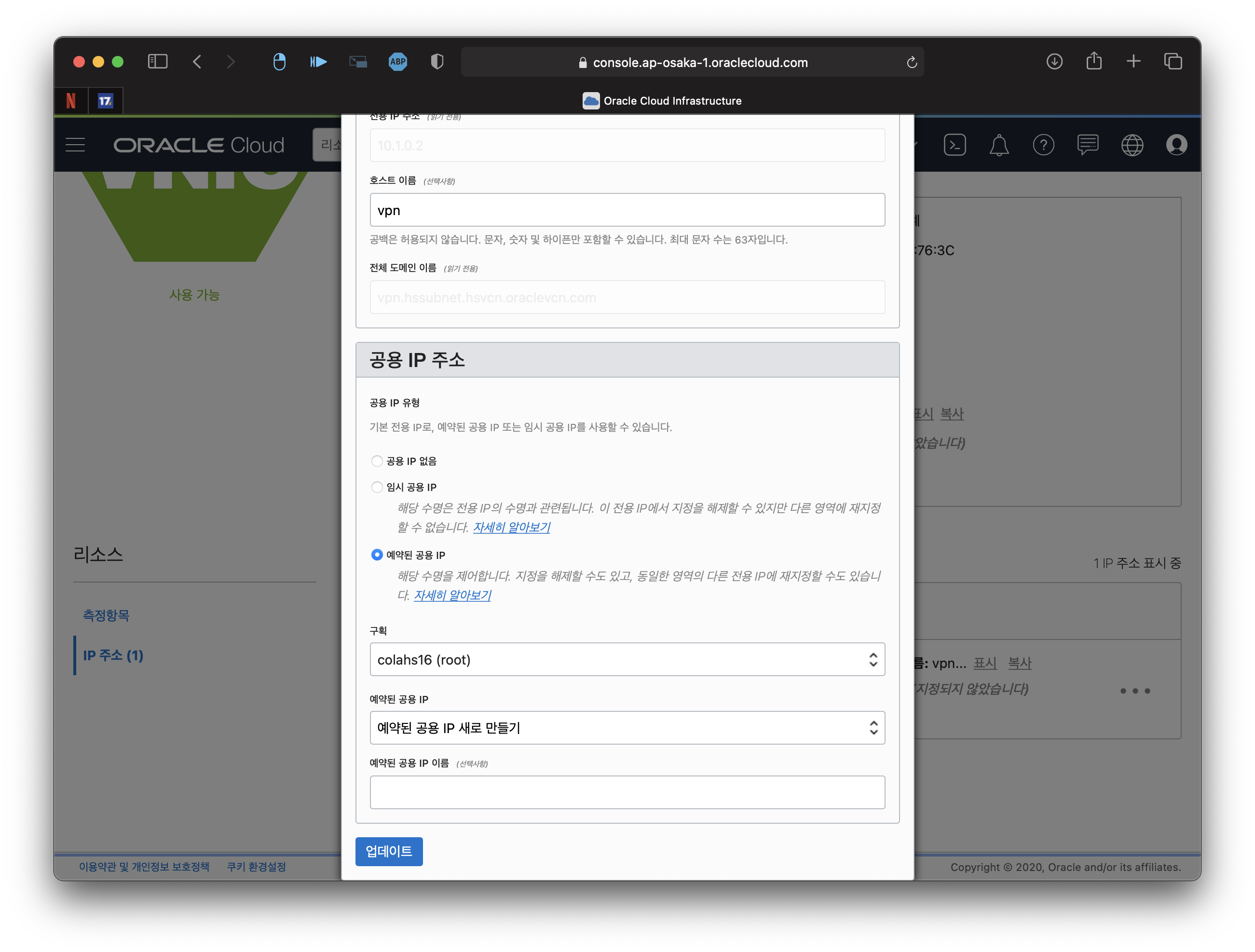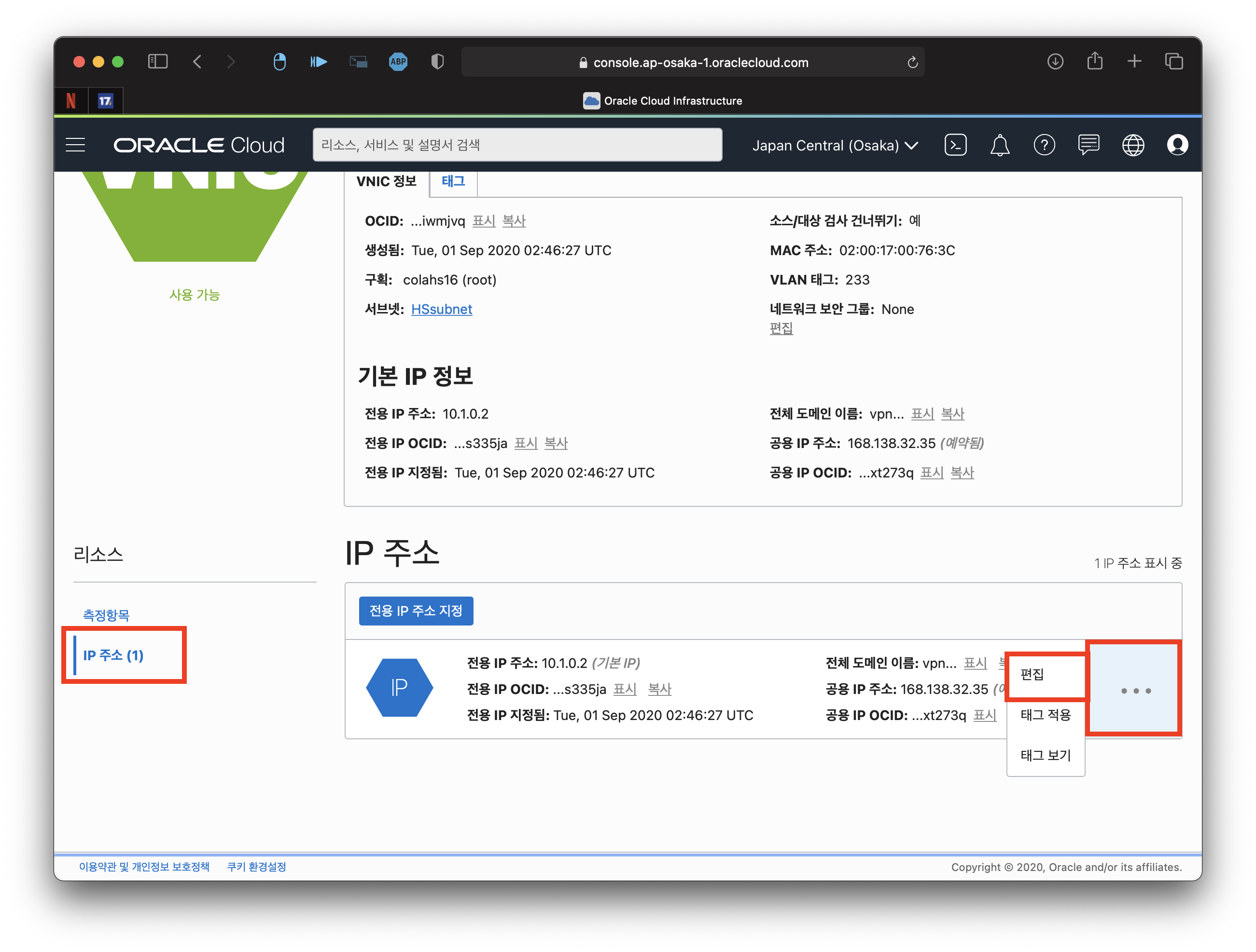 이 글에서는 VNIC(가상 네트워크 인터페이스 카드)를 편집하여 임시 ip 주소를 예약된 ip주소로 바꾸는 방법을 소개해 드릴 예정입니다.