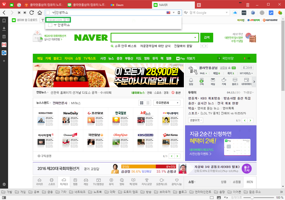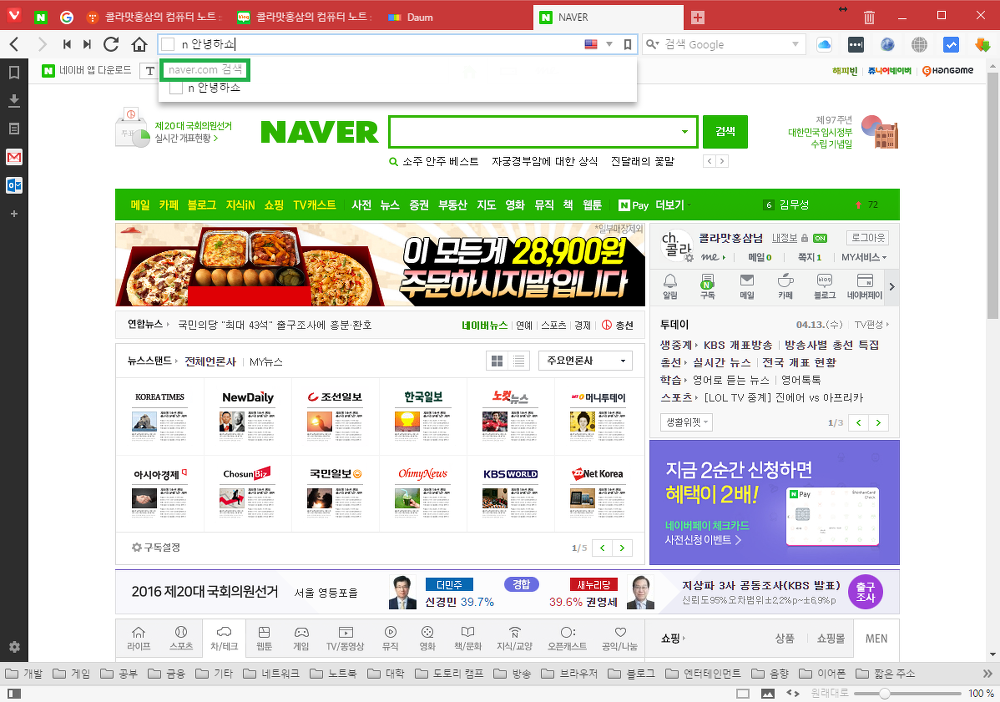 그런데 단순히 네이버 사전 검색을 위해서 탭 8개 정도가 열린 브라우저를 사용한다?