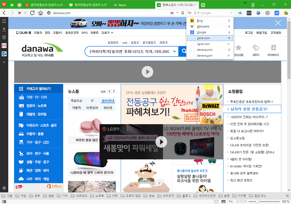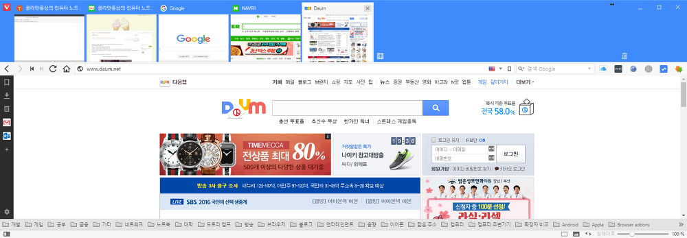 하지만 오페라 12나 비발디는 다릅니다. 블로그 관련 탭 묶고, 가격비교 사이트끼리 묶을 수 있지요.