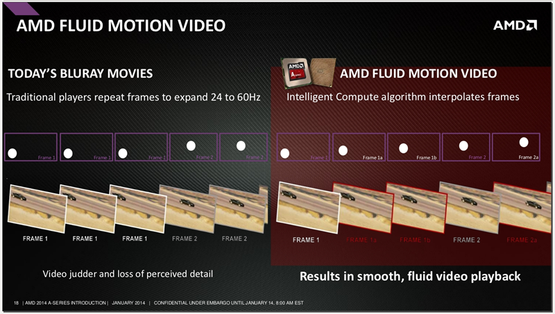 AMD Fluid Motion(이하 AFM)은 프레임 보간 기술입니다.자세하게 설명하자면 30 프레임인 영상에서 두개의 프레임 사이에 새로운 프레임을 만들어서 넣는 기술입니다.