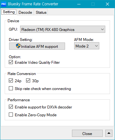 그럼 오늘은 AFM을 Bluesky Frame Rate converter(이하 Bluesky FRC)를 이용해 적용하는 방법과 SVP를 적용하는 방법을 가르쳐 드리겠습니다.