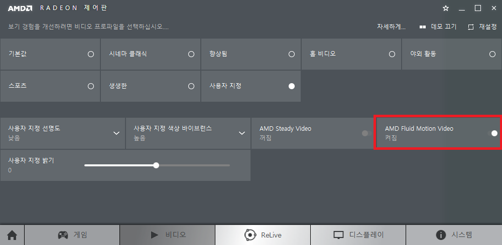 AMD Fluid Motion Video를 체크해줍니다.
