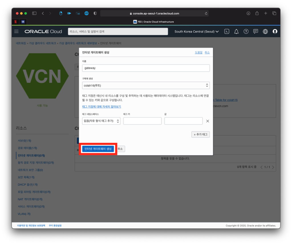 Oracle cloud에 기본 VCN과 같은 VCN 추가하기