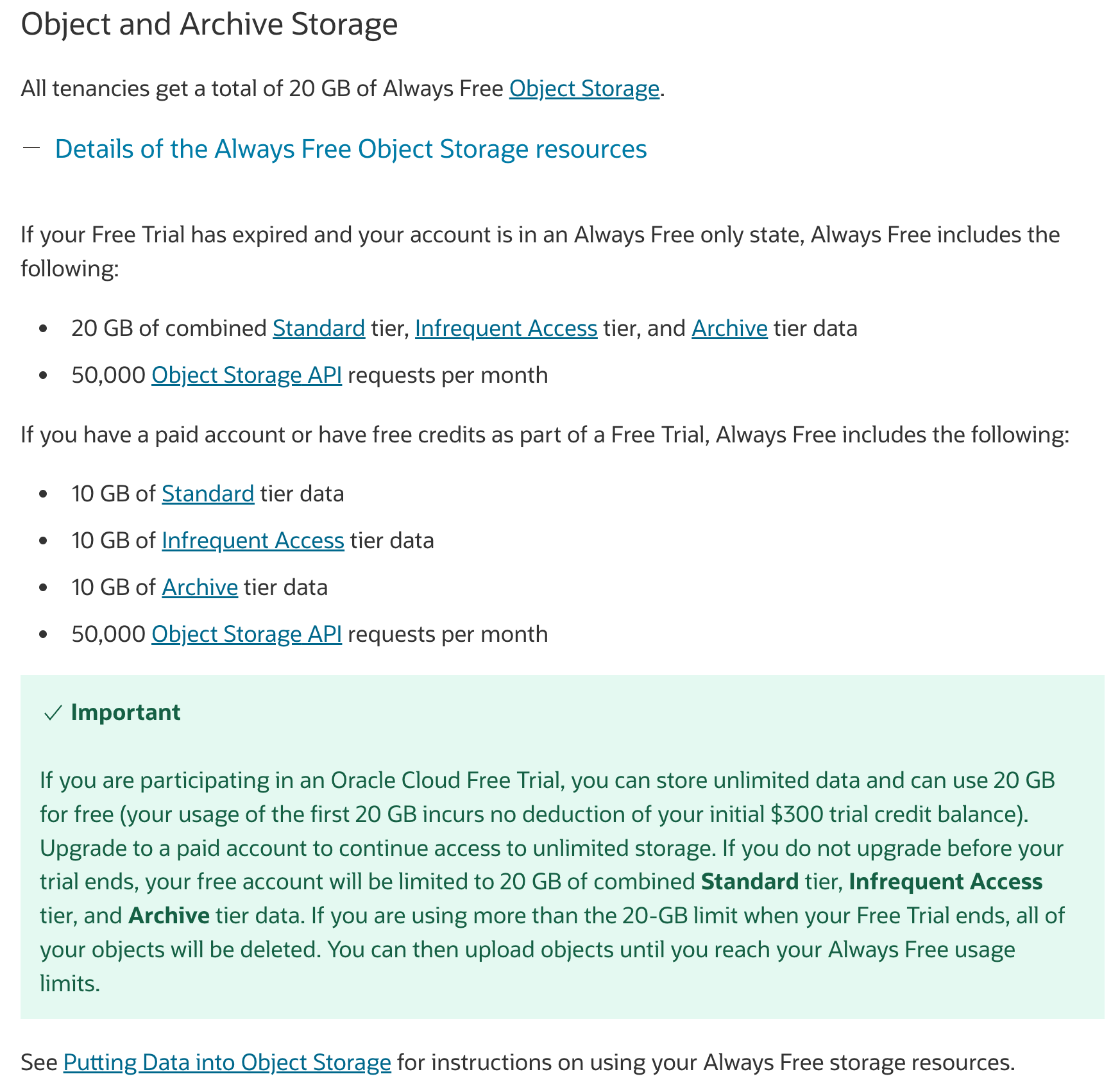 Free Tier도 20기가의 Object Storage Standard가 제공됩니다.