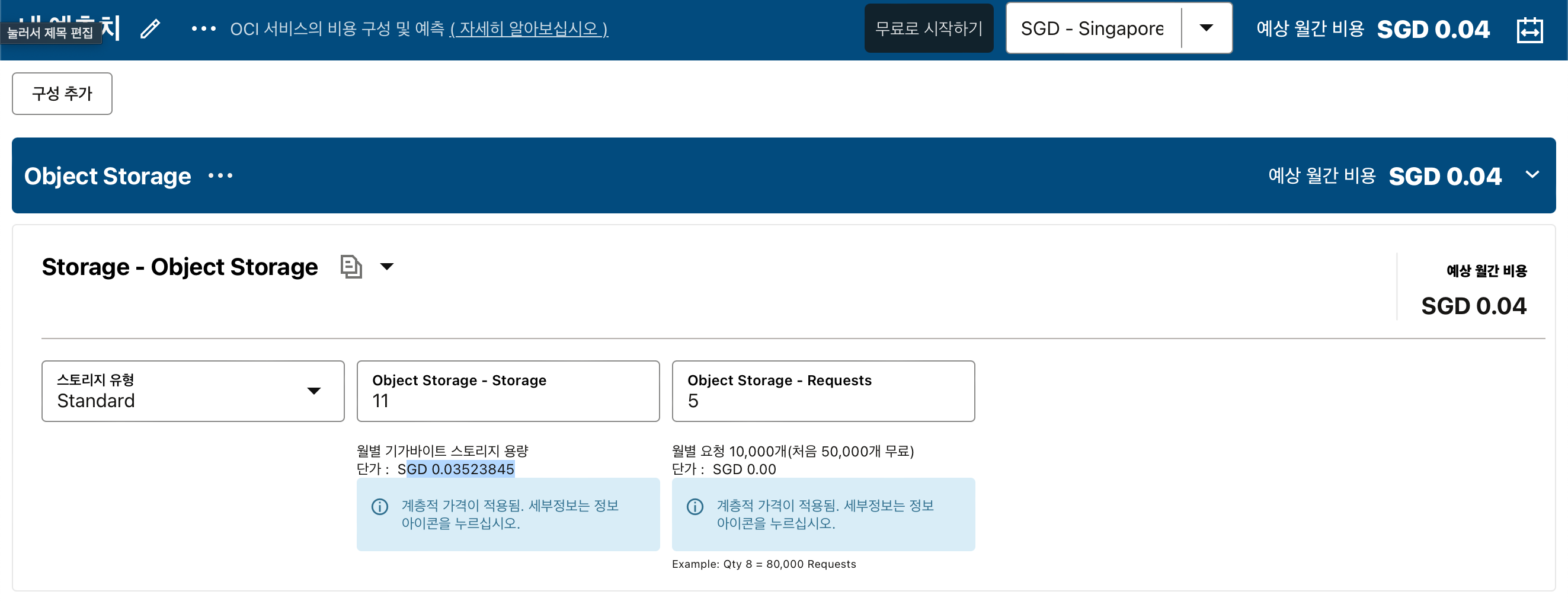 계산해보면 Object storage Standard 4GB를 사용하게 됩니다.