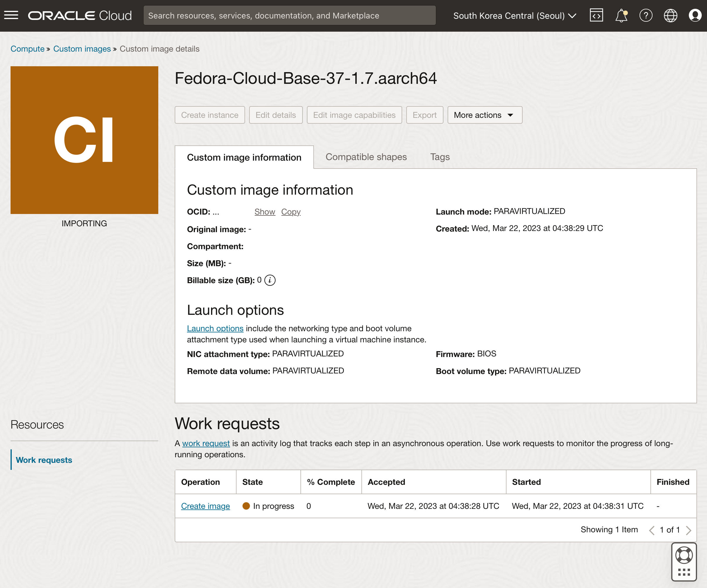 이번 단계에서는 다운로드 받은 이미지를 Oracle Cloud에 업로드합니다
