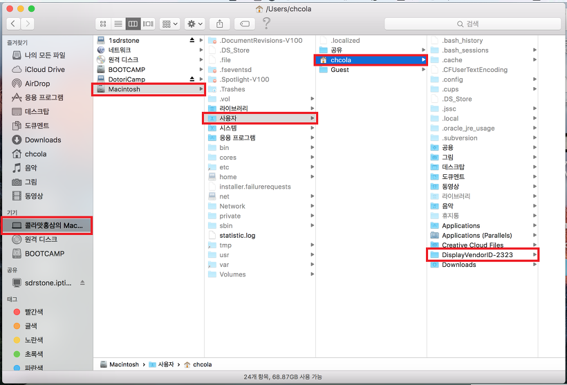 그 안에 DisplayVendorID-****의 폴더가 있는데, 이 폴더 안의 파일을 바탕화면에 만든 폴더 안에 넣어주면 됩니다.