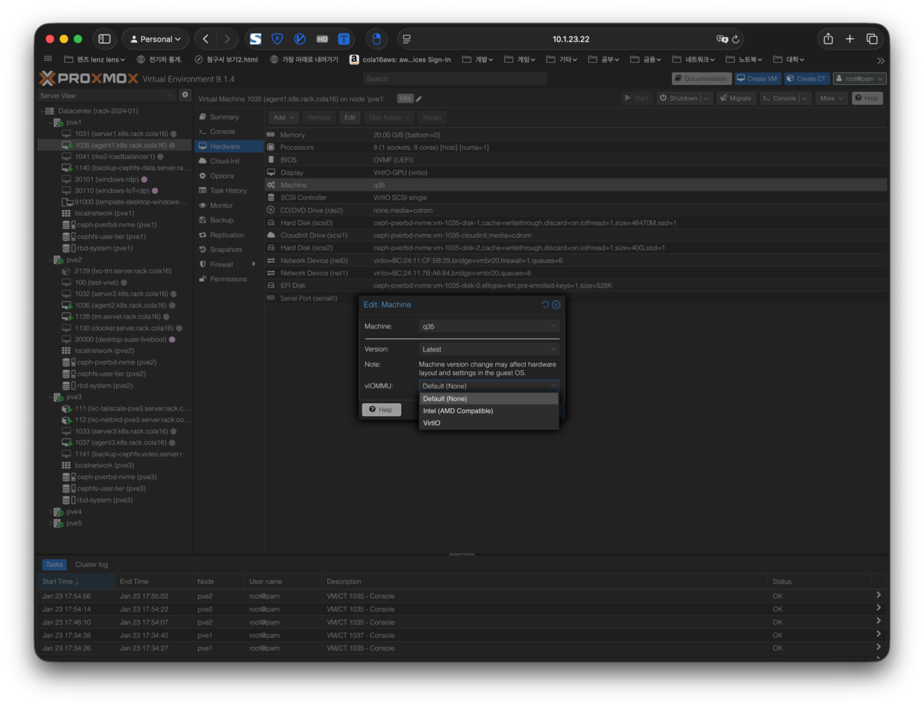Machine은 q35에 vIOMMU는 None으로 설정한다.