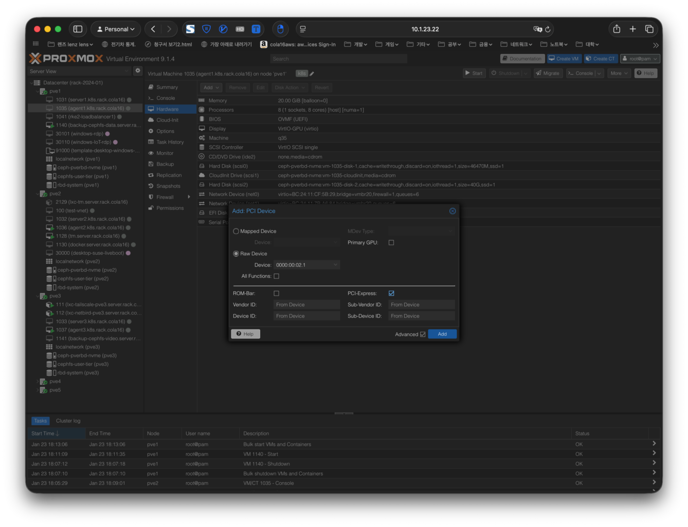 Raw device에서 추가 된 iGPU를 선택한다. .0으로 끝나는 장치는 PF(Physical Function)이므로 실수로도 연결하지 않도록 한다.