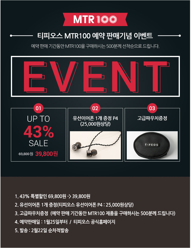 MTR100과 P4는 HPS(Hign Performance Speaker) 10mm Dynamic Driver를 사용합니다.