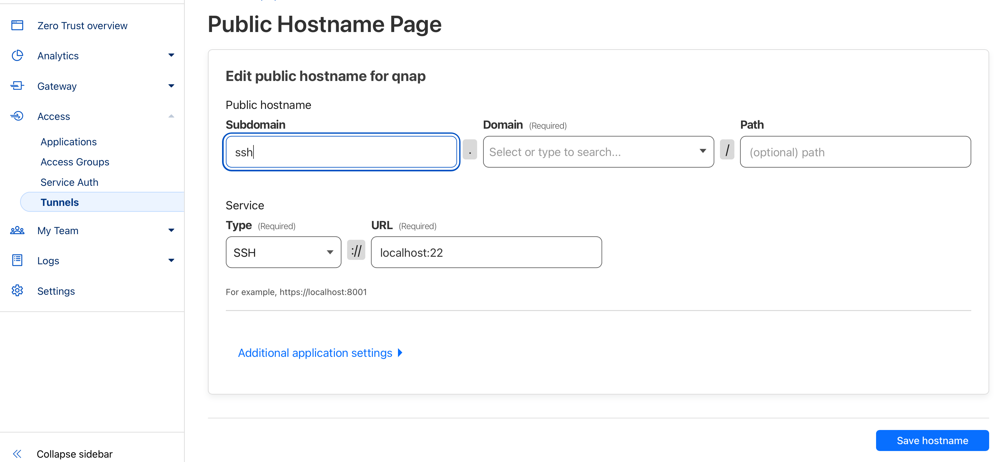 Access -> Tunnels -> <profile> -> Public Hostname로 이동합니다.