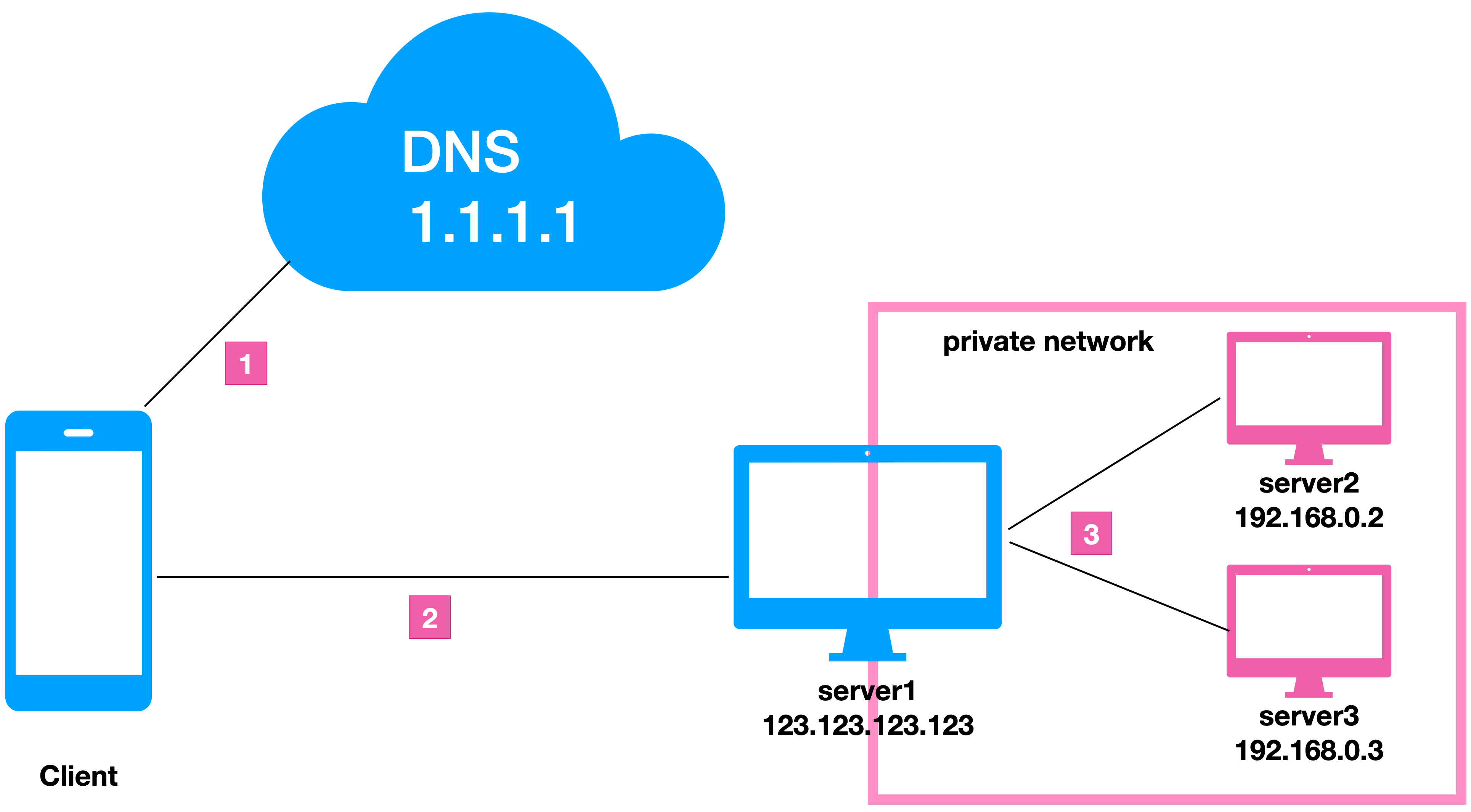 - server(123.123.123.123)은 private IP를 사용하는 backend 서버로 연결