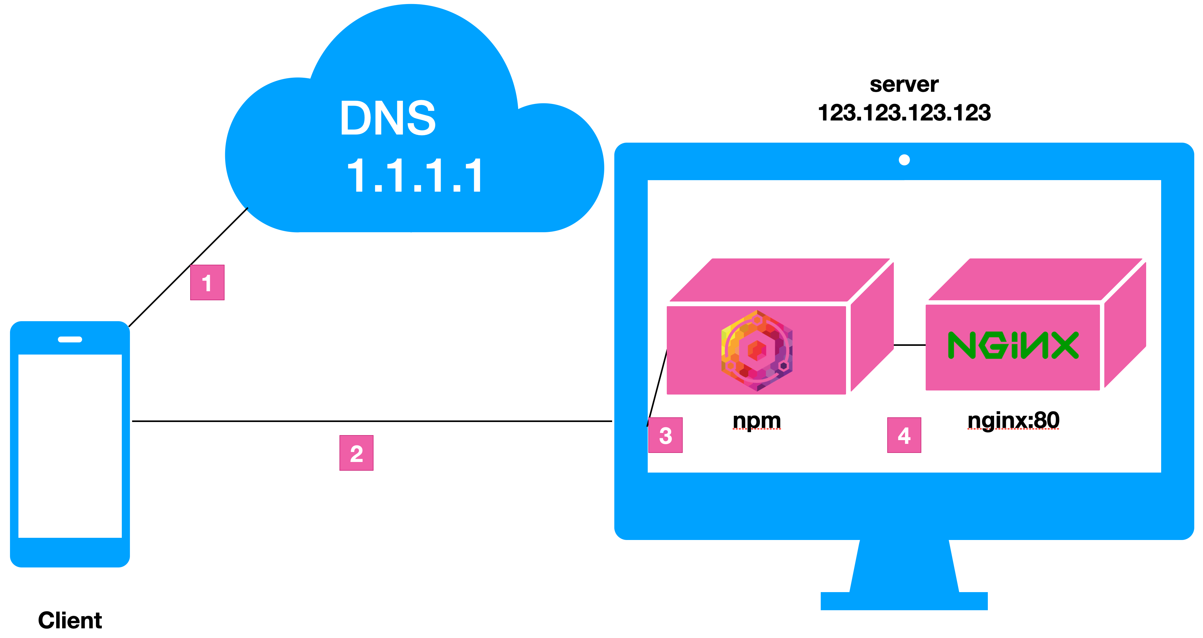 - server(123.123.123.123)은 npm docker 컨테이너로 port forwarding