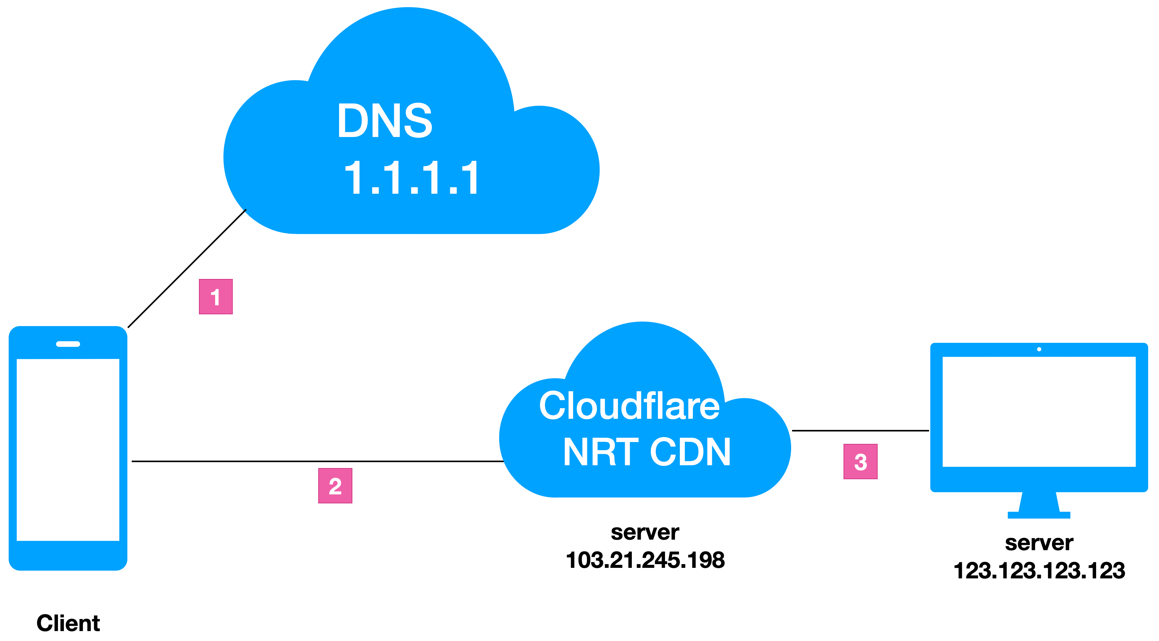 - Client는 DNS를 통해 알아낸 IP 주소(103.21.245.198)으로 연결