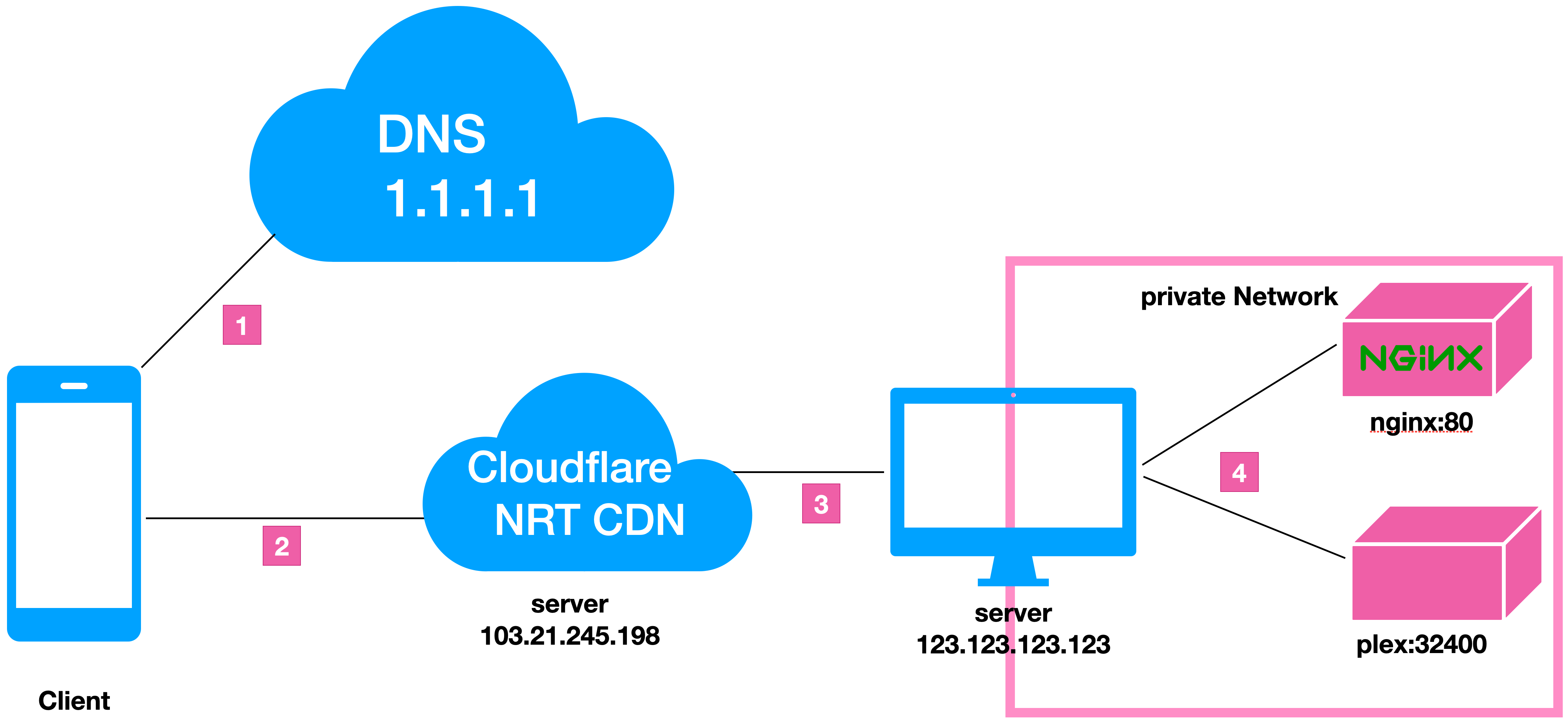 cloudflare가 구성한 reverse proxy와 내 서버에 구성한 reverse proxy를 이중으로 사용합니다.