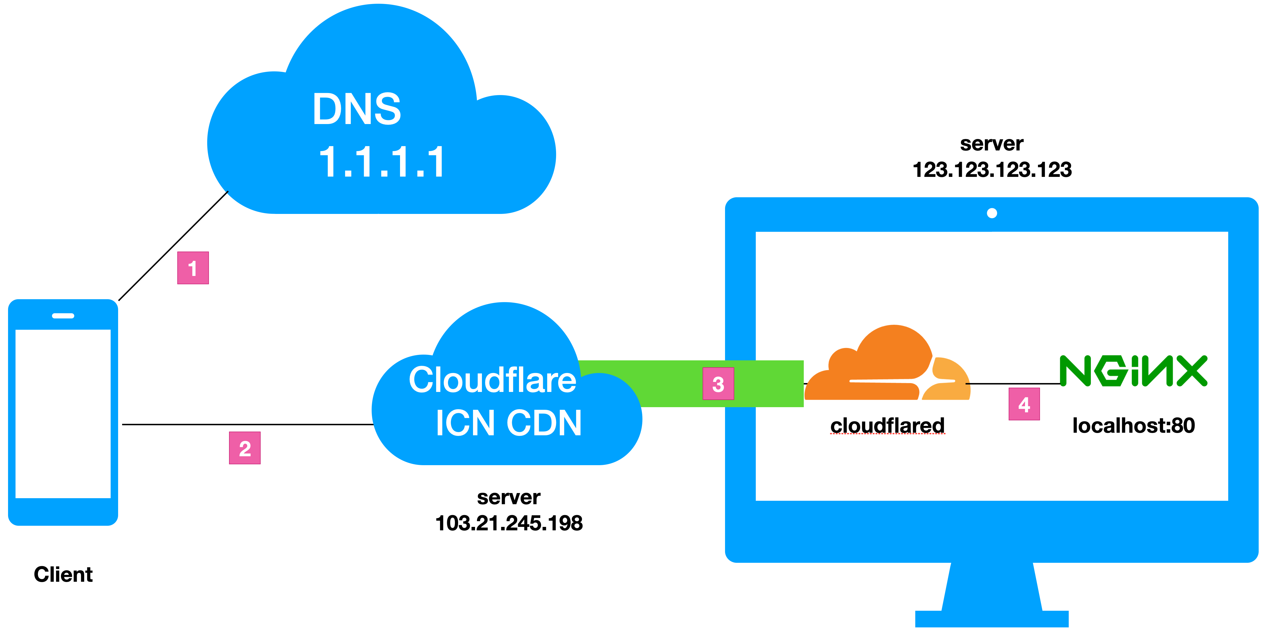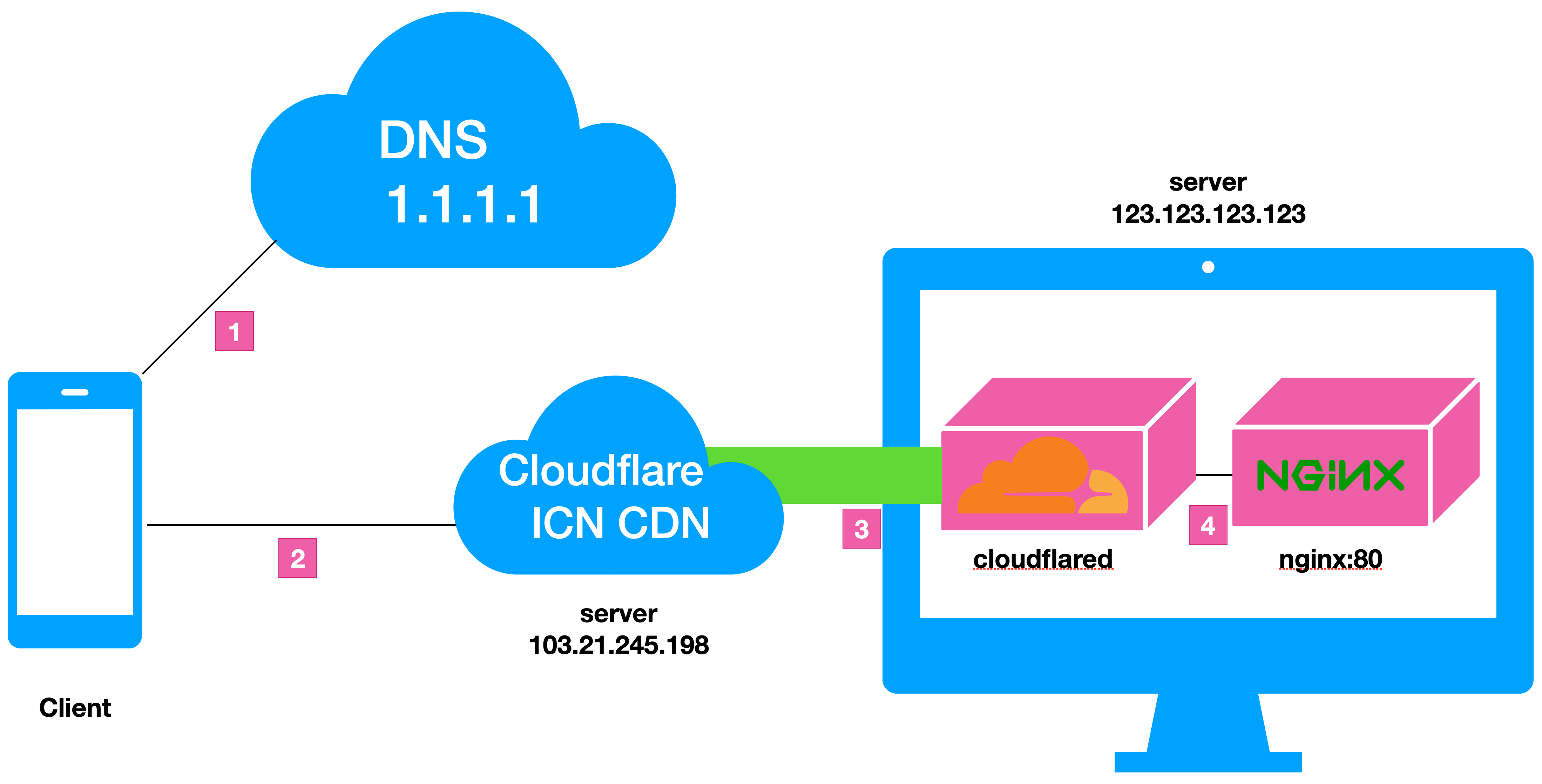 - Cloudflare 인천 CDN은 server의 cloudflared에 연결