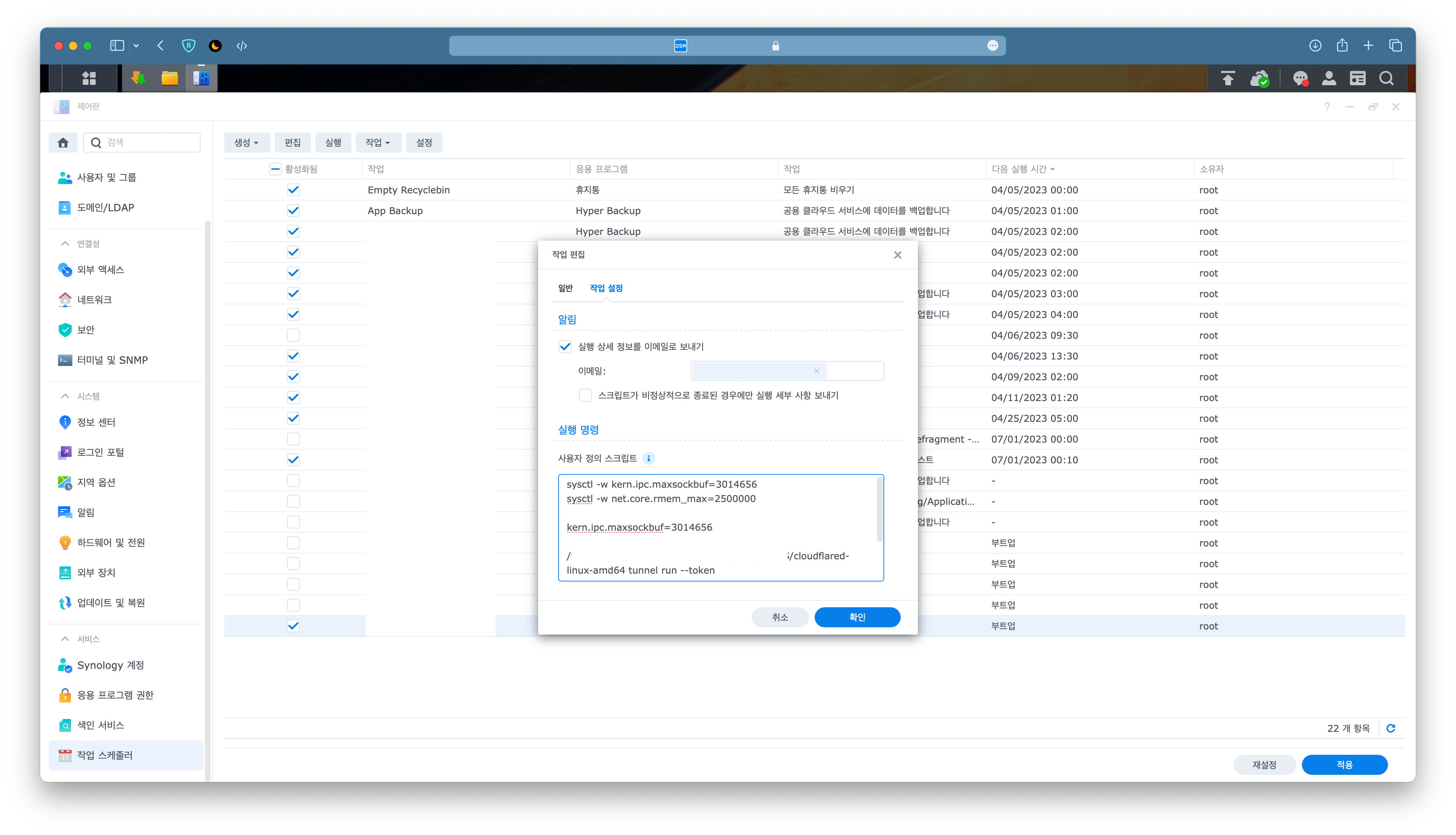 시놀로지는 DSM의 작업 스케줄러에서 설정할 예정이므로 다음 섹션에서 설명 드리겠습니다