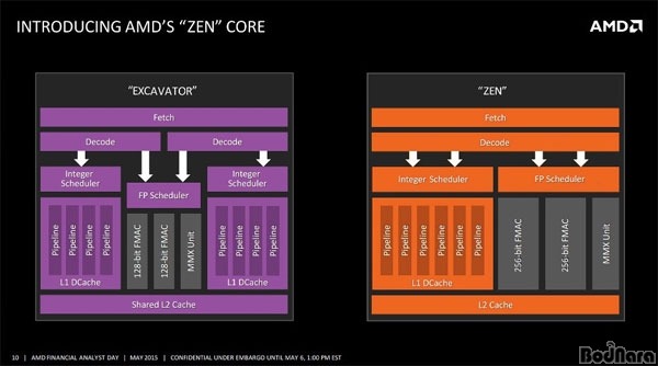 기존 excavator와 비교되어있다. excavator는 한 모듈을 보여주고 있고, ZEN은 한 코어를 보여준다.